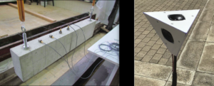 The two Tromino Blu (a high-sensitivity low-noise compact velocimeter-accelerometer-seismograph for the dynamic characterization of structures and soils, and for structural health monitoring applications) can be seen below: